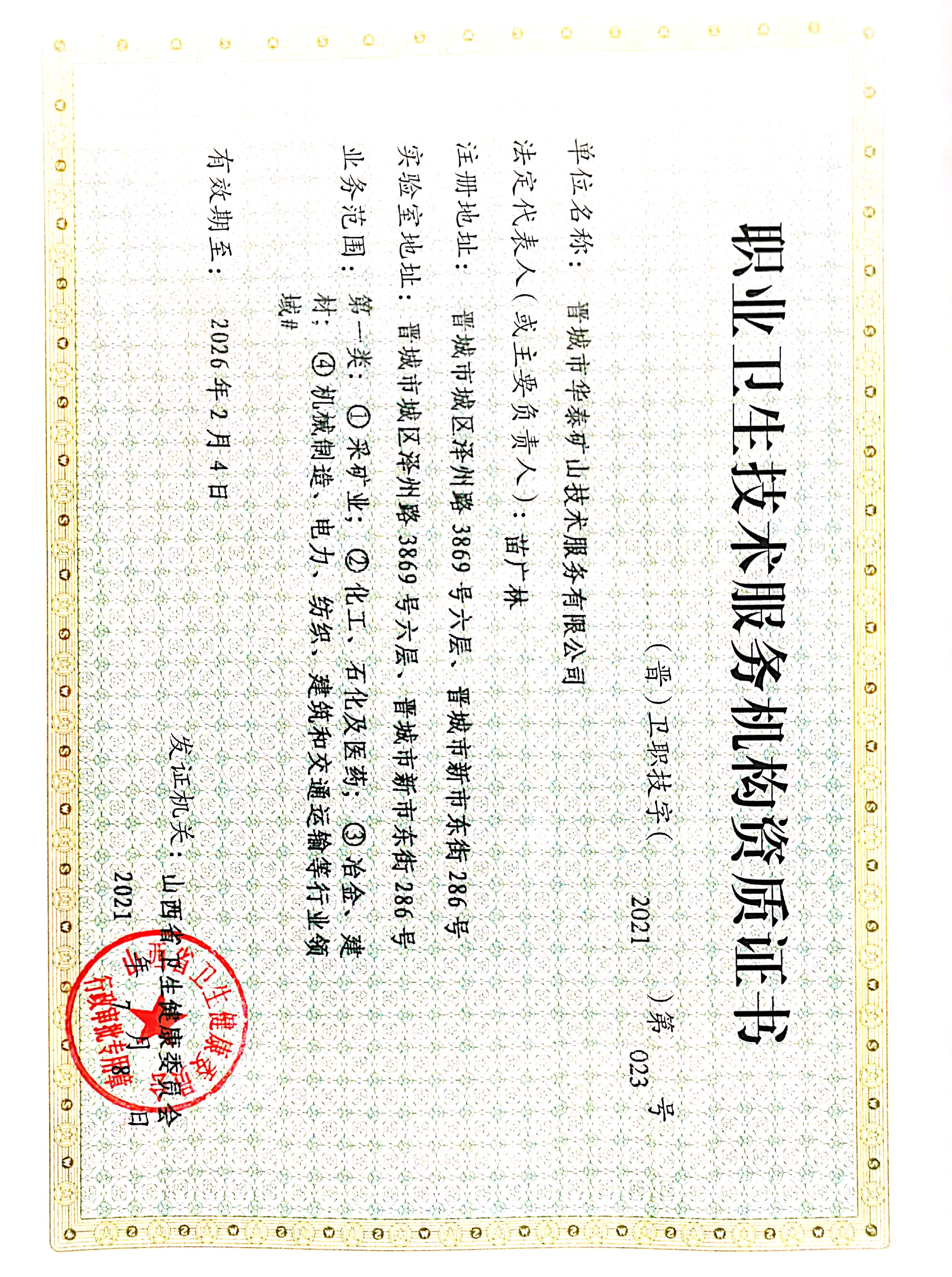 晉城國(guó)投華泰科技有限公司(以下簡(jiǎn)稱華泰公司)是一家經(jīng)營(yíng)性國(guó)有企業(yè),注冊(cè)資金1000.2萬(wàn)元(由晉城市華泰礦山技術(shù)服務(wù)有限公司和晉城澤泰安全技術(shù)服務(wù)有限公司合并整合組建,國(guó)投全資)。公司持有山西省衛(wèi)生健康委員會(huì)頒發(fā)的《職業(yè)衛(wèi)生技術(shù)服務(wù)資質(zhì)證書(shū)》、山西省應(yīng)急管理局頒發(fā)的《安全評(píng)價(jià)機(jī)構(gòu)資質(zhì)證書(shū)》和山西省市場(chǎng)監(jiān)督管理局頒發(fā)的《檢驗(yàn)檢測(cè)機(jī)構(gòu)資質(zhì)認(rèn)定證書(shū)》等資質(zhì),設(shè)施設(shè)備、能力、資質(zhì)配套齊全。...【詳細(xì)信息】
